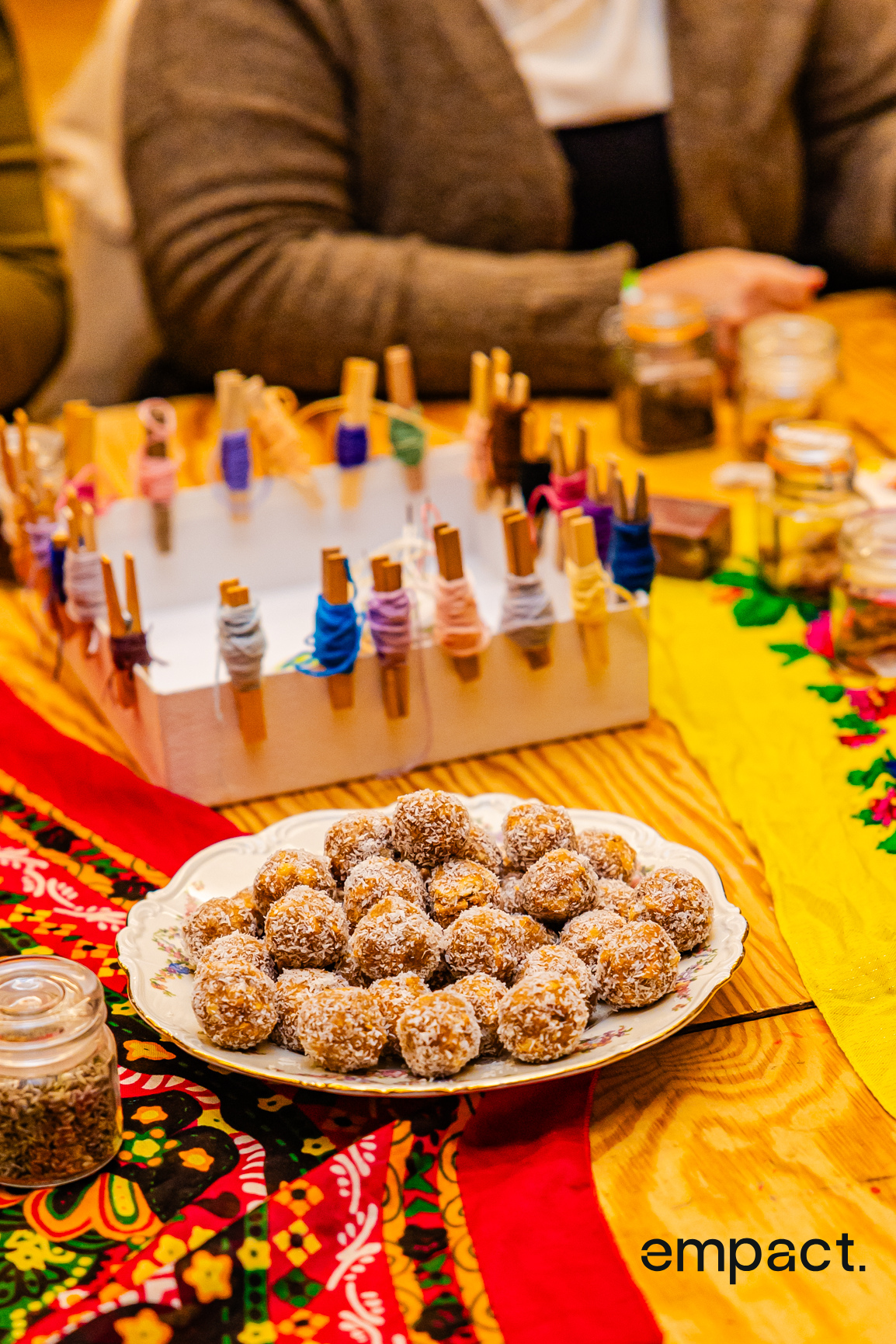 Ook onze creatieve- en naaiworkshops, begeleid door Sana Barghouti, droegen bij aan de expo. Iedereen naaide of verfde kleine stukjes die samen deel vormden van een lange cape, teken van vrouwelijke solidariteit — wat toch echt een soort superkracht is.